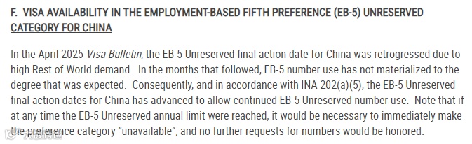 新政下的EB-5预留签证类别-乡村项目,继续保持无排期状态。