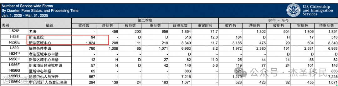6月30日美国公民及移民服务局(USCIS)发布了2025财年第二季度(2025年1-3月)各类移民的关键数据。其中,新EB-5投资移民类别——申请量暴增。与旧政相比,EB5新政策的优势已逐步显现!