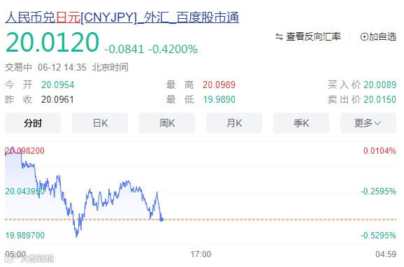 截至2025年6月12日,人民币兑换日元的汇率如下: