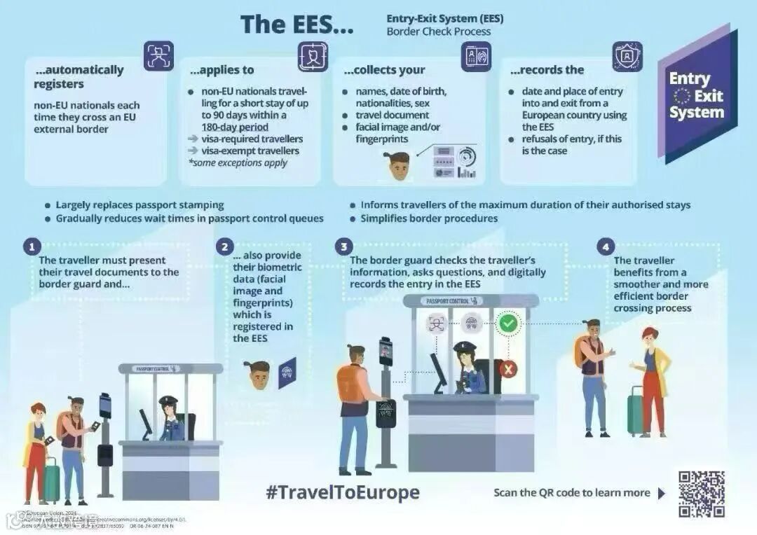 10月12日起,欧盟将正式启用全新的“入境系统”(EES)!所有非欧盟游客在机场、港口、陆路口岸均需强制录入指纹、面部生物信息,边境排队时间可能延长数倍。