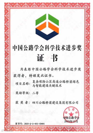 近日,路桥集团隧道分公司联合10家产学研用单位、历时6年攻关的《复杂艰险山区高速公路桥梁绿色与智能建造关键技术》,荣获中国公路学会科学技术进步奖二等奖!