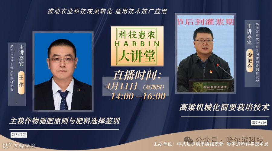 “科技惠农大讲堂”丨第143讲:主栽作物施肥原则与肥料选择鉴别,第144讲:高粱机械化简要栽培技术【直播预告】