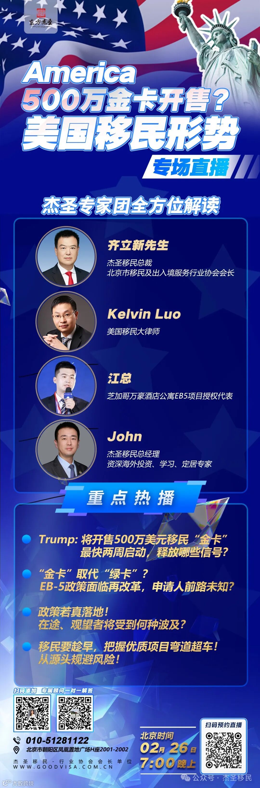 美国移民吸引全球目光,欢迎大家扫描海报下方二维码,预约今晚直播。👆👆👆 杰圣邀您“云端”相见!