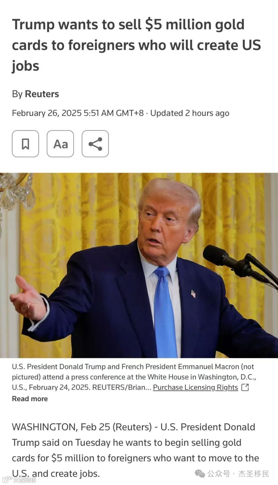 此言一出,一时激起千层浪!特朗普信誓旦旦,“金卡”的移民项目可能会在大约两周后启动实施!