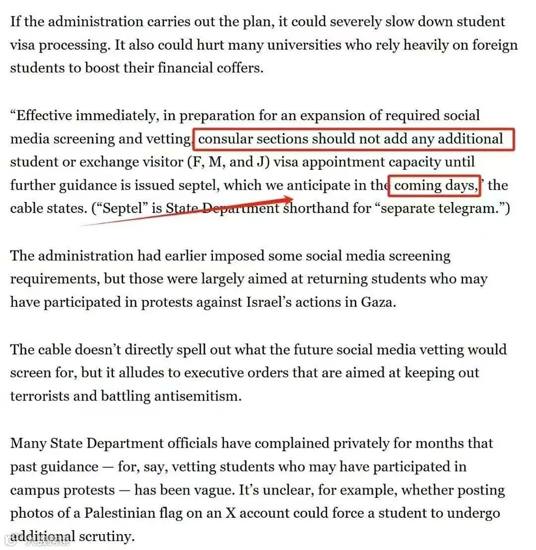 与此同时,更炸裂的是,一项针对所有赴美国际学生的“社交媒体背景强制审查”计划正在紧锣密鼓地筹备之中!