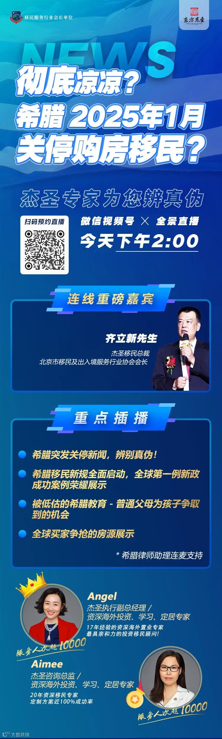 今日,杰圣移民继续追踪该消息,并实时进行了视频号在线直播,邀请几位行业大咖以及杰圣移民总裁、移民行业协会会长齐立新先生在线连线,对该消息共辨真伪!直播回放请扫描下方二维码观看。