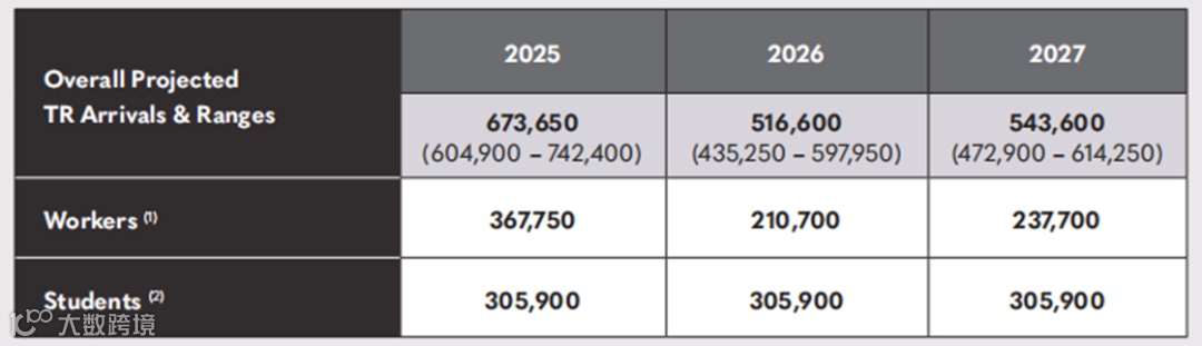 到2025年,国际学生的目标(305,900 人)比2024年的目标减少了10%,并会在 2026 年稳定下来。而工人(包括IMP 和TFW计划下的入境者)则被优先考虑,占2025年新入境TR人数的55%。TFW计划的目标优先考虑初级农业工人,以保护加拿大的粮食安全和食品供应链。