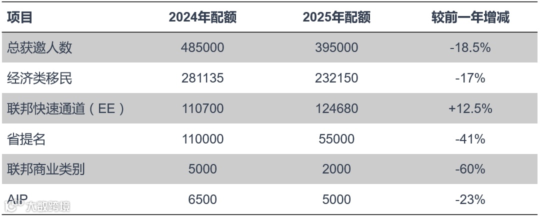 上面提到的主要一些移民项目的明年配额情况,可以从上表中卡到,除了联邦EE通道都在大幅下降,最高达60%的降幅。