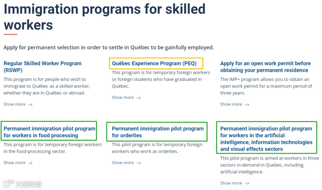 当前能走的除了三个配额有限的试点项目外(食品工人、护工和IT三类试点),只有魁省经验类项目下(PEQ)的海外劳工还可以申请。然而,这些项目中除了IT三类试点项目有少许部分名额可以不需要法语成绩外,其余的基本都需要法语成绩,对于绝大多数中国申请人来说也是望洋兴叹了。