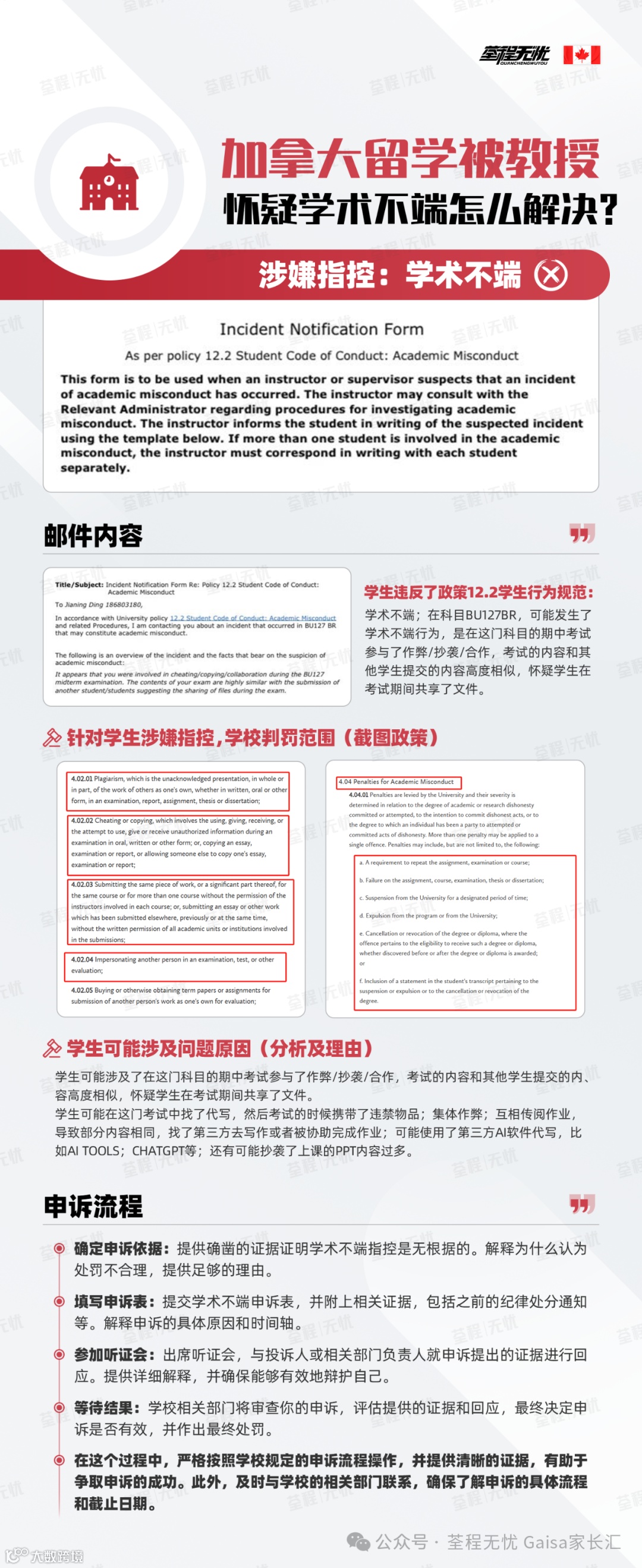 1. 承认违规;2. 否认违规。「承认违规」如果承认违规,需要解释导致违规的情况以及你为什么认为违规发生了,并且应该简要描述自己的学习历史,调查对你造成的影响,以及你计划如何纠正这种情况。「否认违规」如果不承认违规,请解释为什么认为自己没有违反学术诚信要求。提供细节和证据来支持自己的解释。此时不知道应该如何申诉,可以寻求专业机构帮忙。