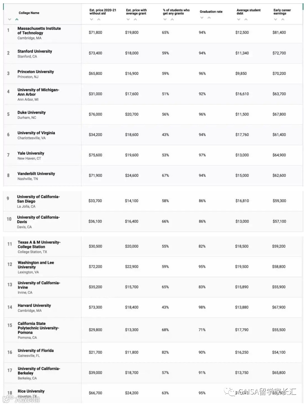 高校的回报率更高呢?最近,《Money》杂志在结合了美国教育部、Peterson's、PayScale的数据,最终统计出2021年性价比最高的美国大学。