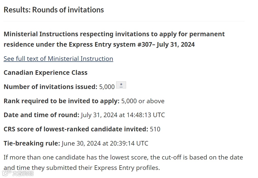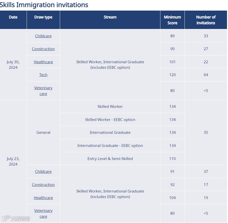 当地时间7月30日,省提名快速通道(PNP-EE)也举行新一轮抽签,共邀请了964名候选人,最低邀请分数为686分。