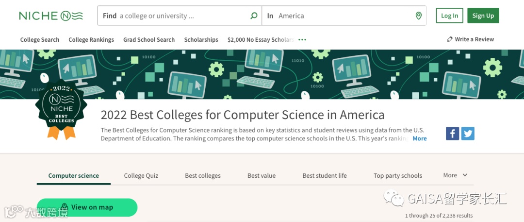 Computer Science(计算机科学)专业最佳大学的排名榜单。
