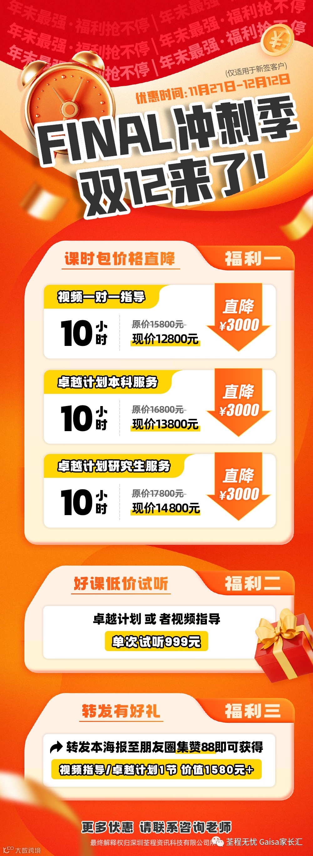 荃程无忧丨课时包价格直降,助力Final冲刺