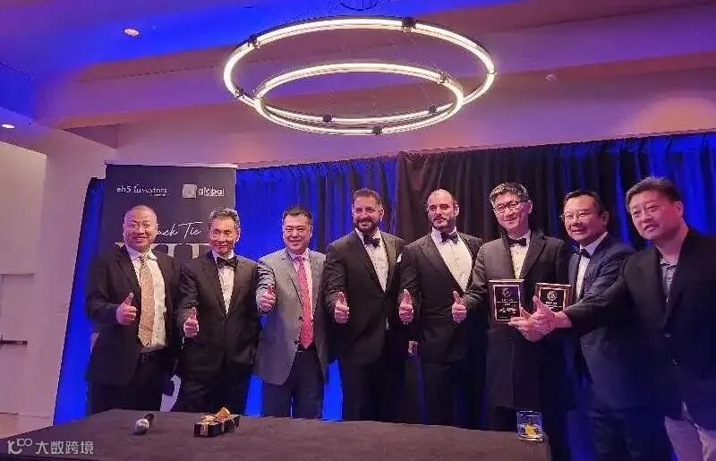 (齐立新总裁出席美国移民峰会颁奖典礼,与Newport市长、峰会主席ALi、国内获奖机构代表合影)