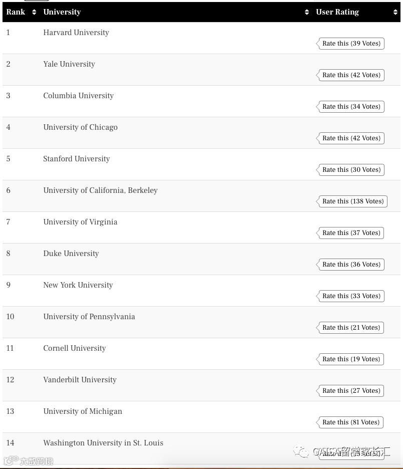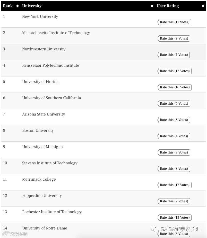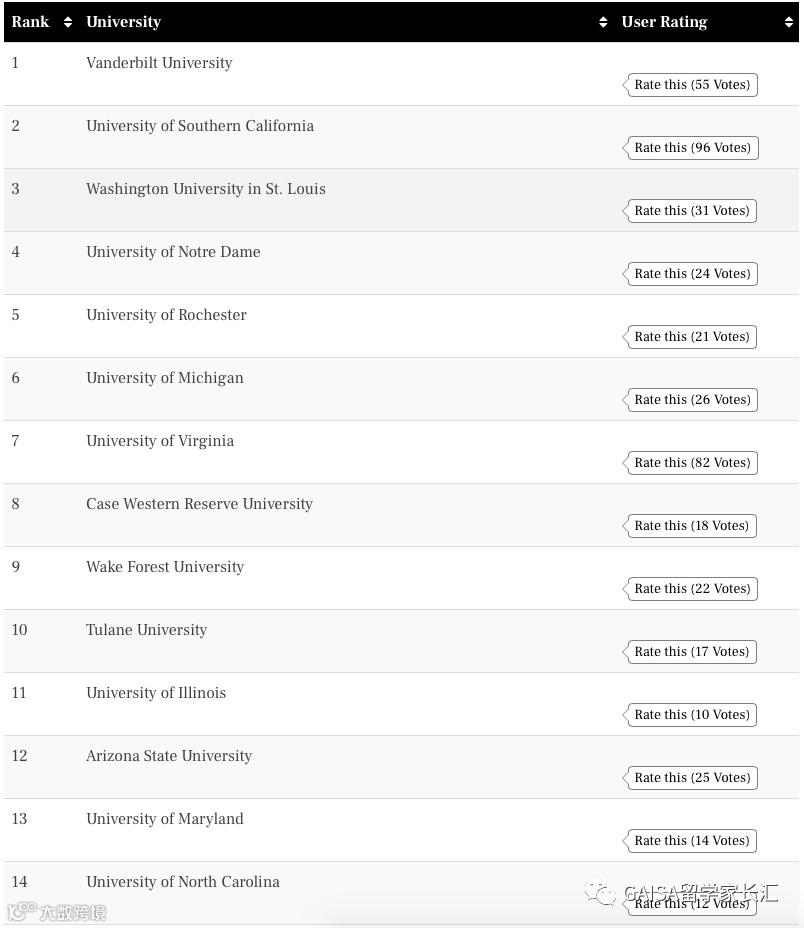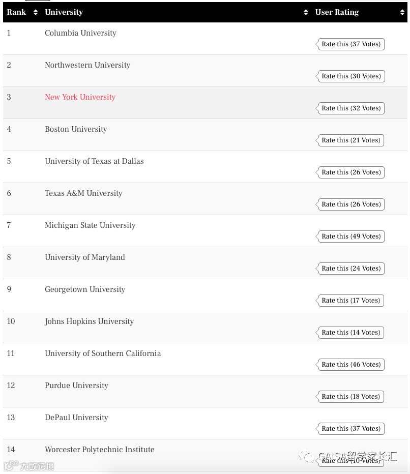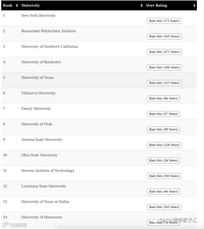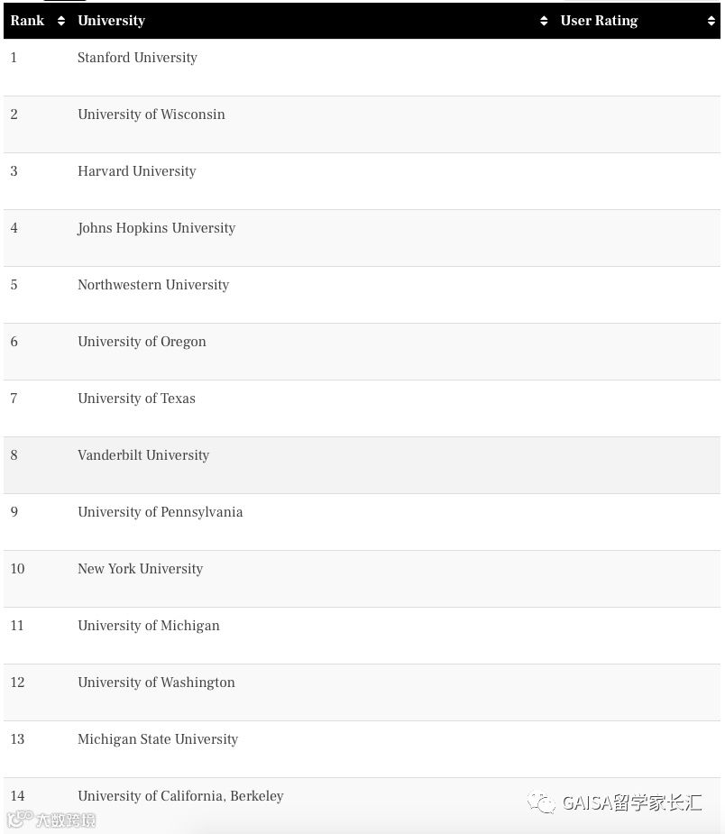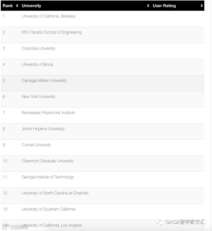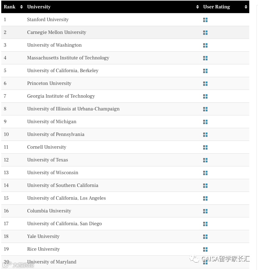 此外,相比USNews的专业排名,这个排名对于有申请美国研究生计划的童鞋们更具参考性。