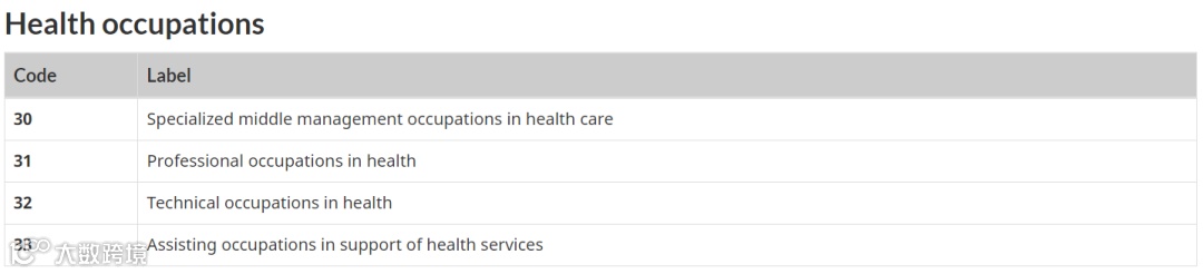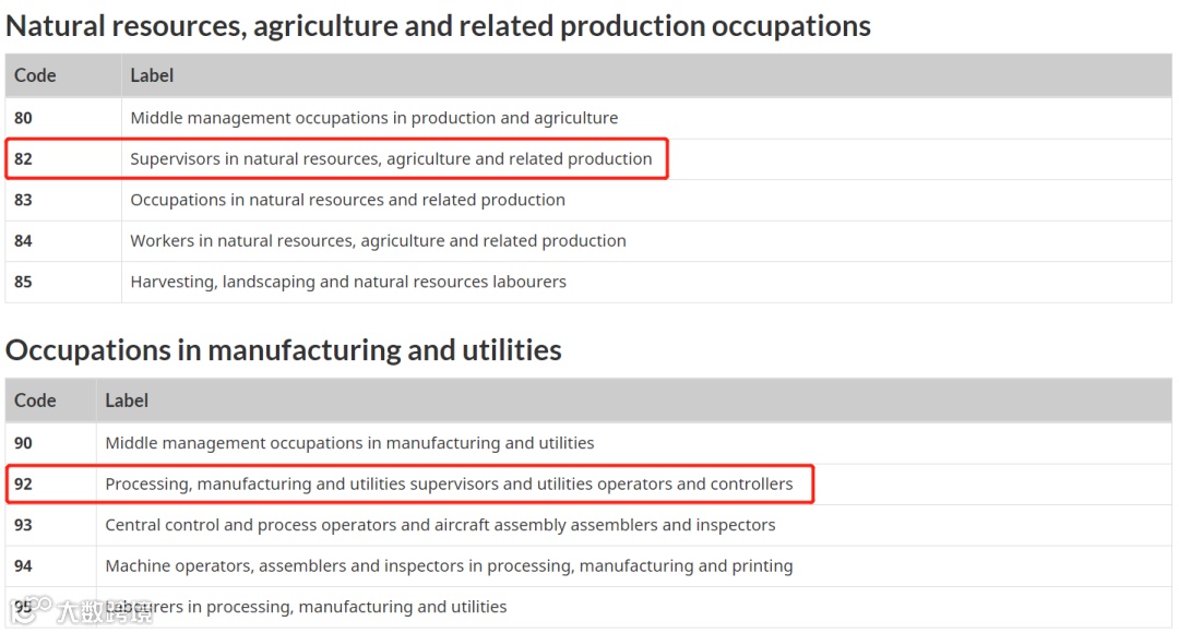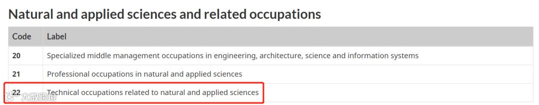 职位满足NOC职业列表分类; -