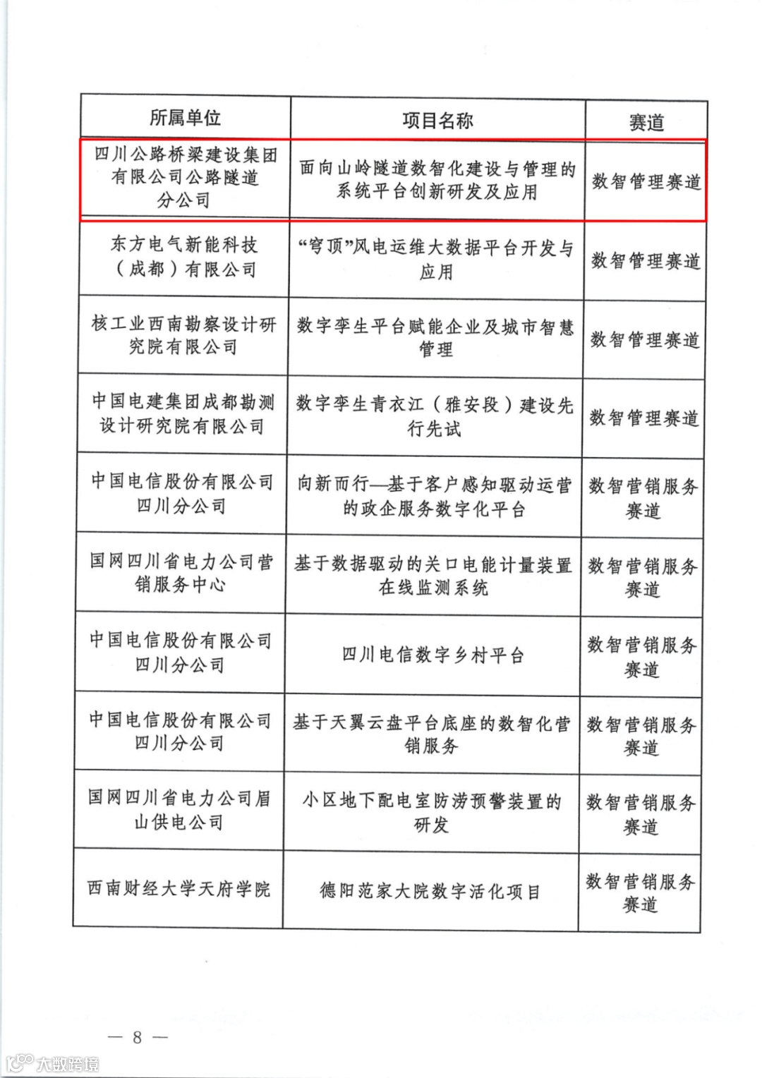 近日,路桥集团公路隧道分公司凭借项目《面向山岭隧道数智化建设与管理的系统平台创新研发及应用》,在第二届四川省职工创新大赛暨2024年四川省职工数字化应用技能大赛斩获佳绩。