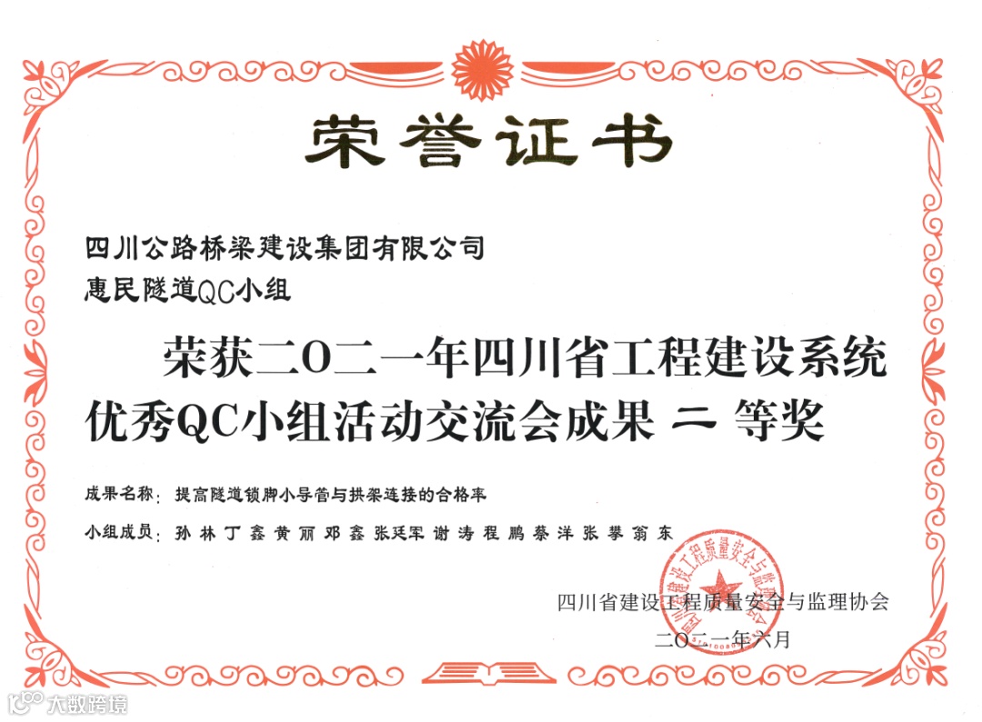 在隧道施工过程中,积极开展工法总结和QC活动,获得四川省级工法和企业级工法各2项,QC活动获四川省级奖项10次,为今后国内“特长”重难点隧道建设提供了先行先试的经验借鉴。