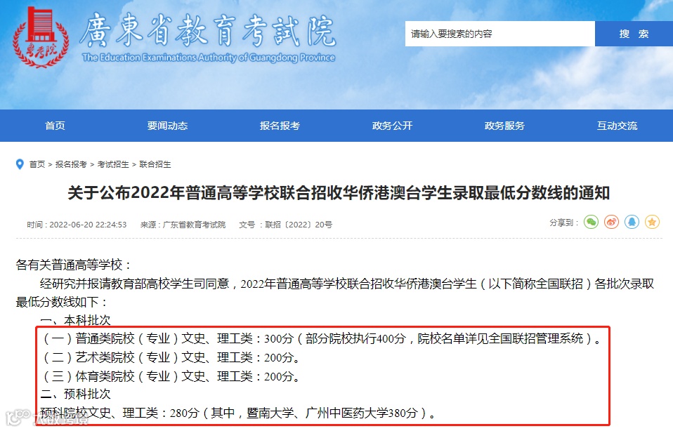 就在不久前的6月20日,2022年普通高等学校联合招收华侨港澳台学生入学考试成绩开放查询与本科批次录取分数线。