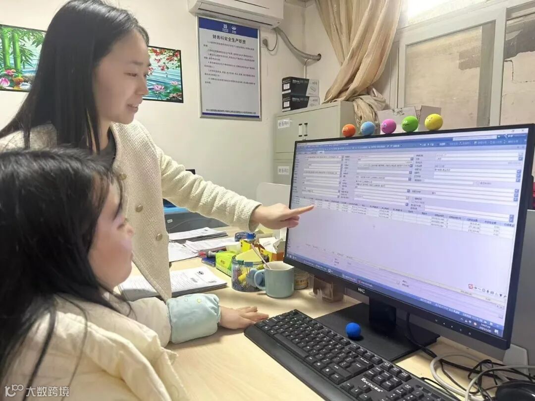 蔡庆铭(上)和瞿鎏郦(下)在操作财务系统