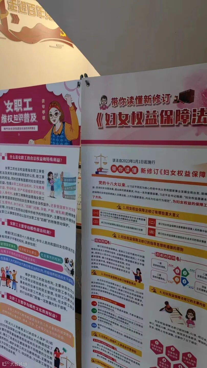 各项目设置分会场,覆盖女职工、女产业工人共计223人次,发放《妇女权益保障法》《女职工劳动保护特别规定》《关爱妇女权益 反对家庭暴力》等性别平等和女职工权益保护法律法规宣传册100余份。