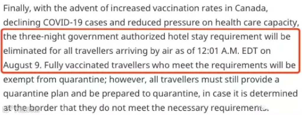 8月9日起,已完全接种疫苗的美国公民、永久居民可入境加拿大,且免除14天强制合理要求;
