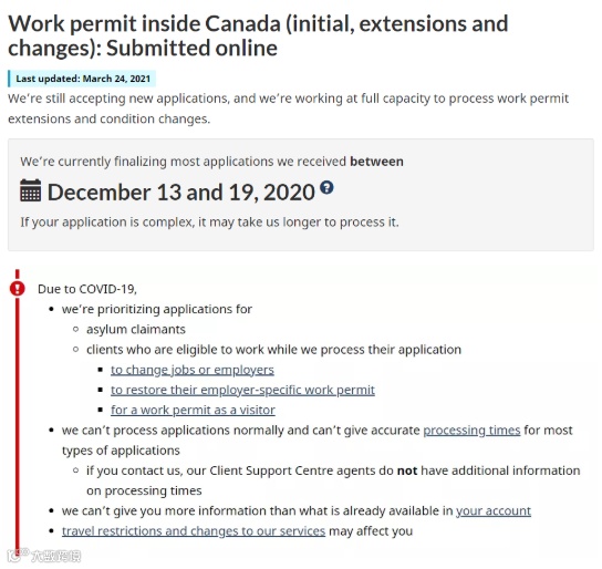 根据3月24日的更新,移民局正在处理2020年12月13日至2020年12月19日之间提交的申请!其中包括申请新的学签、续签和学生实习工签。