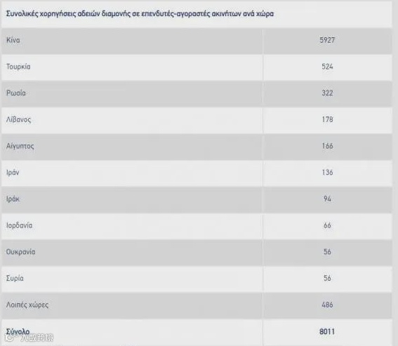 据希腊移民与庇护部移民政策总秘书处的最新数据显示,自2013年“黄金签证”政策出台至今,共有8011名第三国投资者获得希腊政府发放的居留许可证。