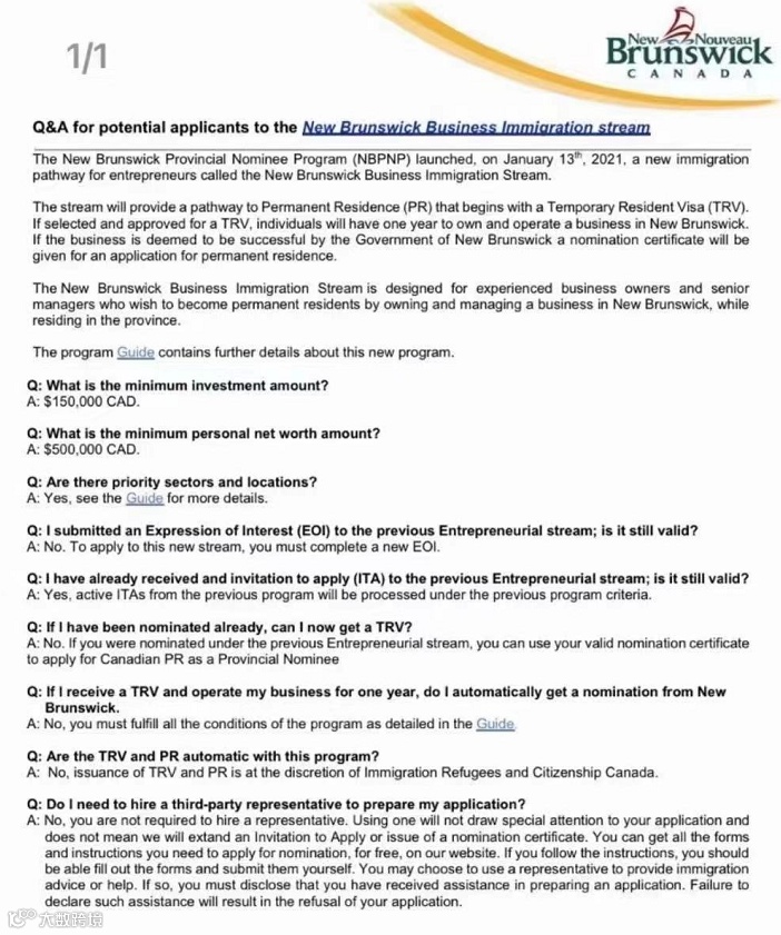 北京时间1月14日,NB省移民局发布更新消息。确认商业类移民项目改为先工签后永居的模式,已收到邀请申请人按变政前政策继续完成申请,未收到邀请申请人需重新提交申请,按新政执行后续。