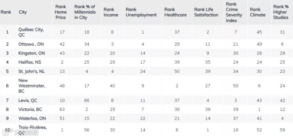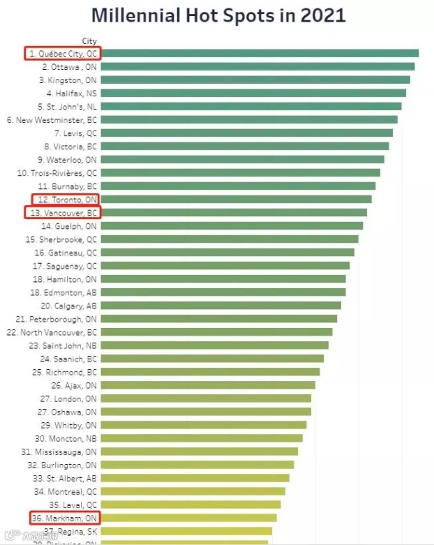 这两座城市在2021年,《千禧一代加拿大最佳城市排行榜》,仅排名12和13名。