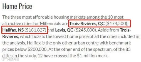 房屋价格排名中,最受欢迎的是魁省的,Trois-Rivieres市,平均房价仅174,500元。诺省的哈利法克斯,仅181,827元。