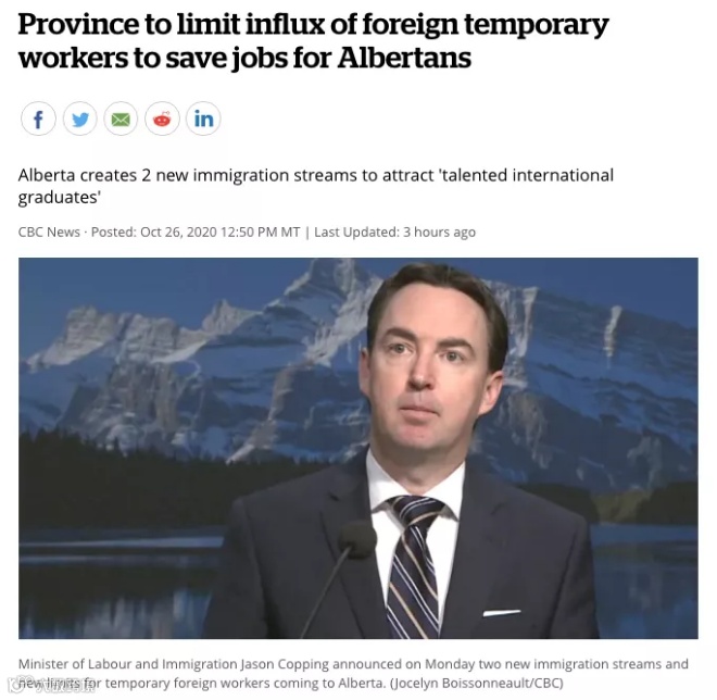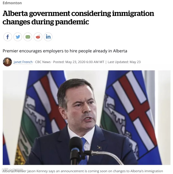 省长Jason Kenney也表示,由于冠状病毒大流行,阿尔伯塔省的移民政策正在发生变化。