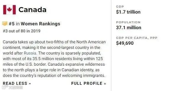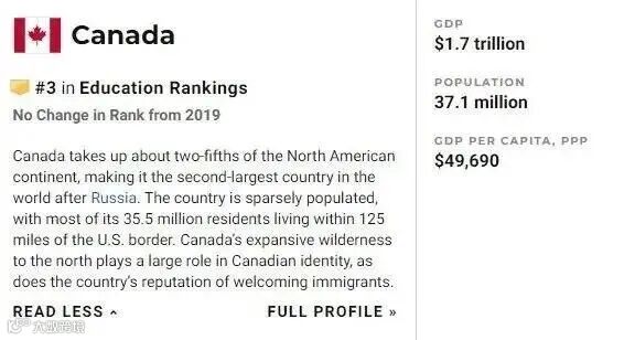 除生活质量外,加拿大在公民待遇、企业精神、商业开放度等多个方面表现不俗!基于加拿大实际人口数量才3700多万,(2018年数据)这样的表现实属不易!