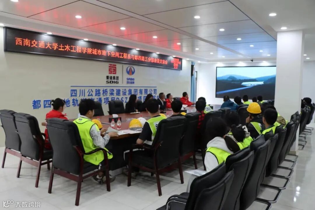 下午1时,观摩团一行来到都四项目部三楼会议室开展校企交流座谈会。会上,观摩团集体观看《都江堰至四姑娘山山地轨道项目地面及高架车站站房概念方案设计》宣传片,听取了都四项目在施工特点、难点概况以及人才培养方面的有力举措和实际成效。随后,双方围绕技术创新、职业规划及就业选择等方面进行深入交流。