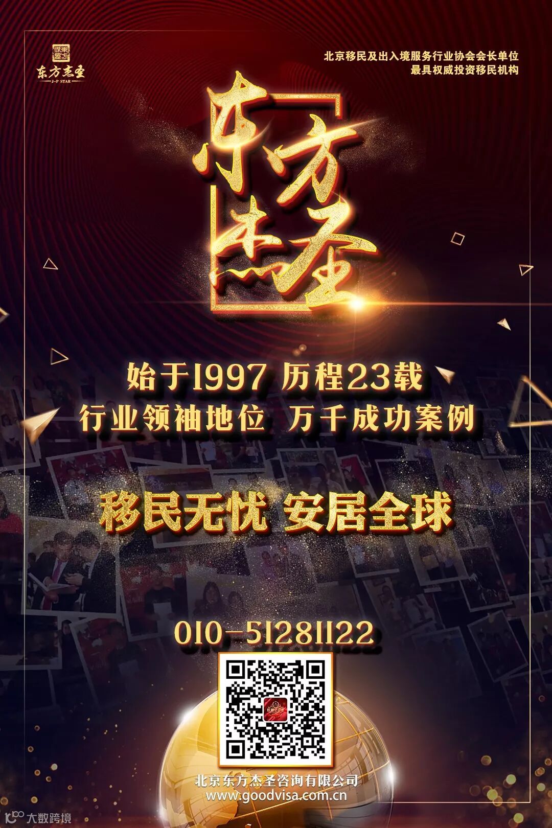 二十二年间,杰圣以自身品牌的魅力以及深厚的企业实力,凝聚了一支强大的资深团队,以贴心、专业的态度为客户服务,也积累了海量成功案例,凭借对移民的深入把握以及严谨的职业操守,已助数千家庭“移”路顺风,实现未来发展的新蓝图。未来杰圣还将更加努力,突破自我,帮助更多申请人实现海外发展的中国梦!选择杰圣!选择成功!