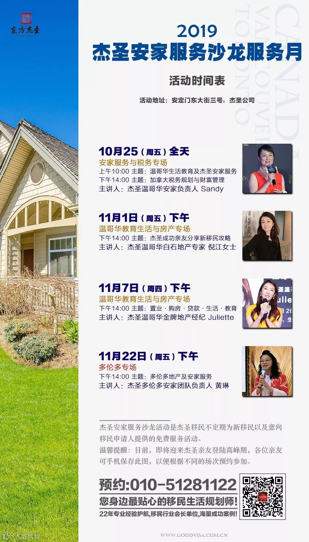 收藏!2019杰圣新移民安家服务场次表!海外团队齐抵京,加国安居无忧行!