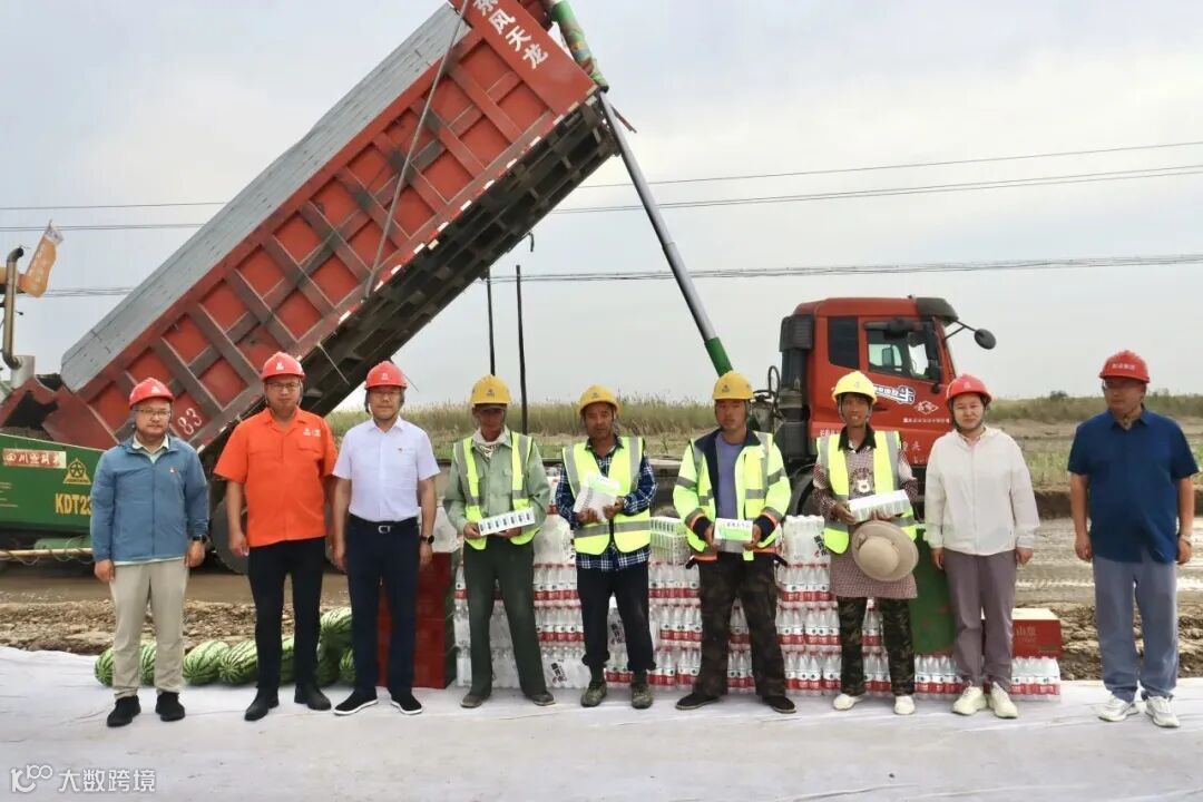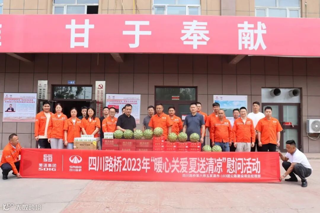 路桥集团总工程师邓亨长一行莅临第六师五家渠市-103团公路建设项目,为项目部全体员工送去了矿泉水、王老吉、西瓜等慰问品,并对奋战在施工一线的职工表示慰问和感谢,同时叮嘱大家在“大干快上”的关键时期要做好高温天气作业安全措施,注意个人的i防暑降温和饮食安全,确保劳动安全与健康。