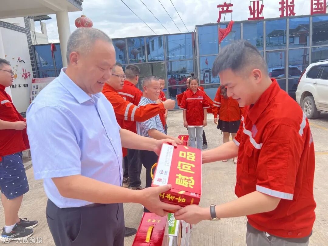 项目部全体领导班子成员前往斜井队伍、进口队伍、临建队伍临时驻地一一将粽子、鸭蛋、西瓜、凉茶、藿香正气液等慰问品分发到坚守在岗位一线的工友们的手中。活动现场,项目常务副经理李欣旺与工友们亲切交流,了解大家的工作生活情况,对大家不惧高温炎热、奋战施工一线表示感谢,并叮嘱大家注意加强防暑降温和生产安全,在确保身体健康的情况下,保质保量完成建设任务。