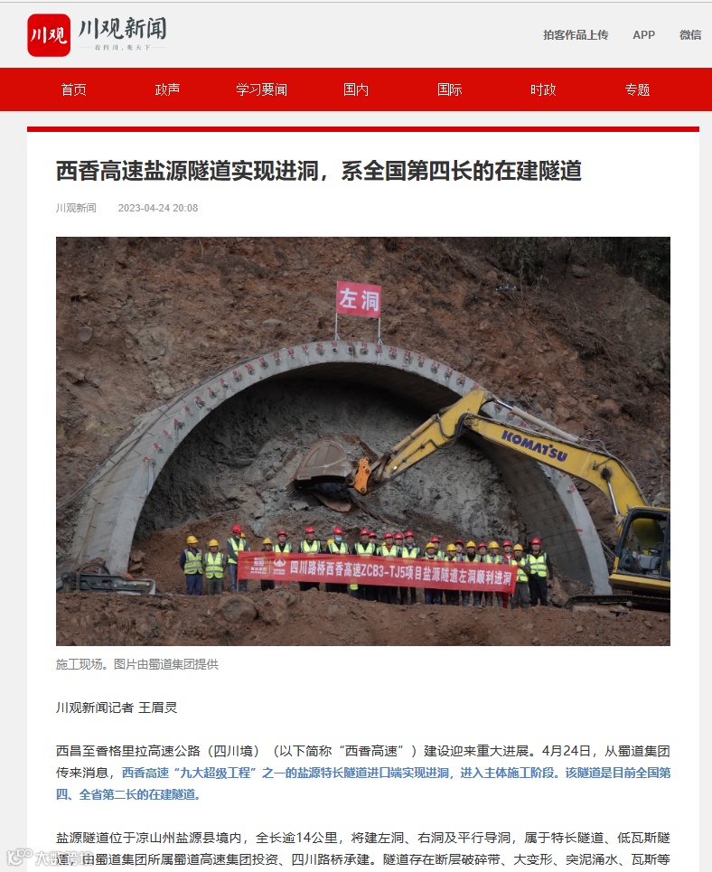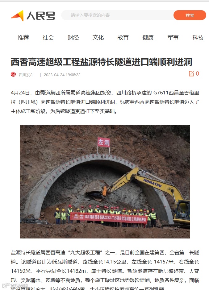盐源隧道属西香高速“九大超级工程”之一,是目前全国在建第四、全省第二长隧道。该隧道设计为低瓦斯隧道,路线全长14.15公里,平行导洞全长14.18公里,属特长隧道。盐源隧道存在断层破碎带、大变形、突泥涌水、瓦斯等不良地质,整个施工隧址区地势艰险陡峭,地质条件复杂,面临建设管理难度大、防灾减灾任务重、生态环境保护要求高等一系列难题。