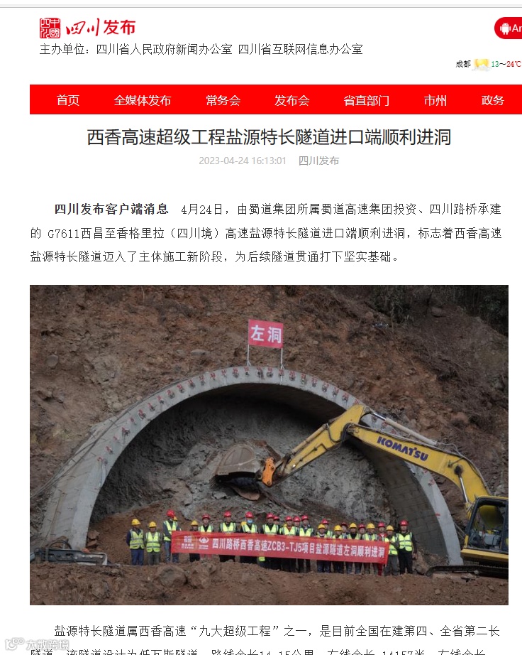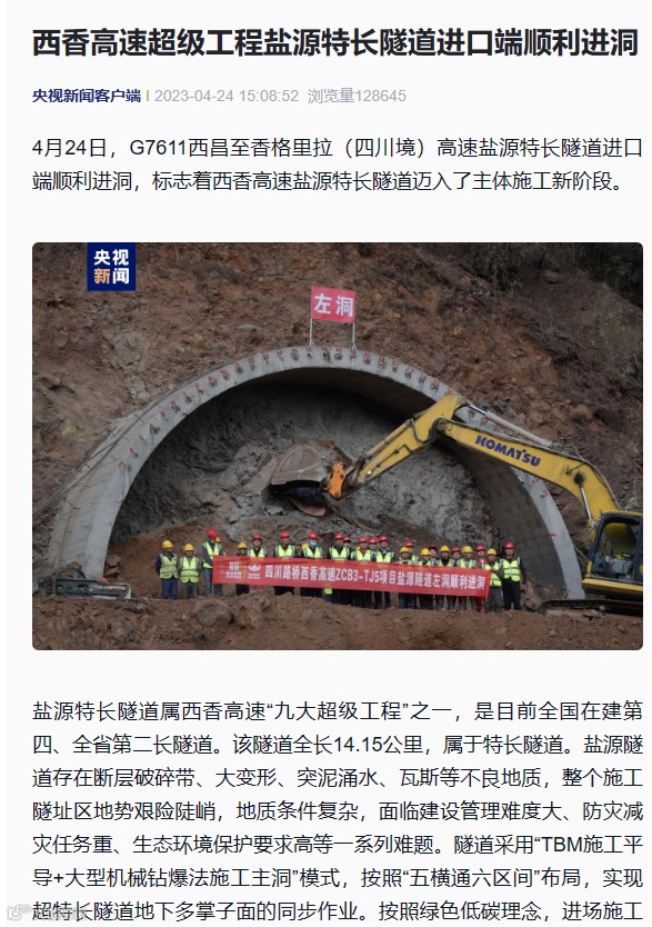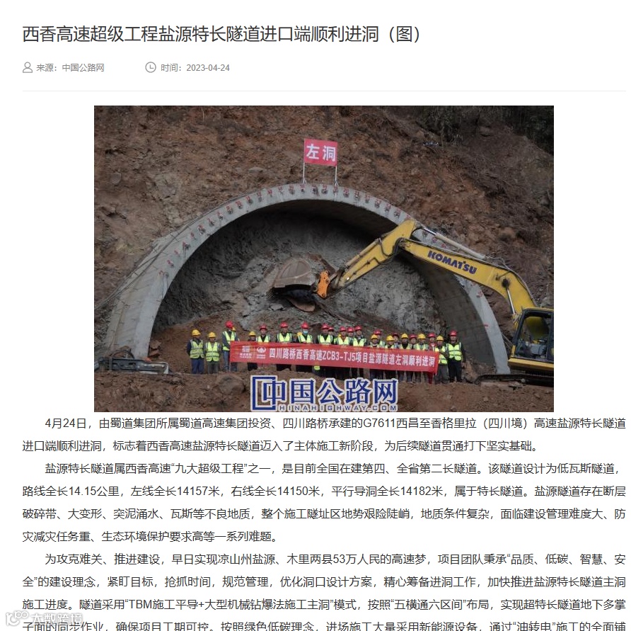 4月24日,由四川路桥集团公路隧道分公司承建的G7611西昌至香格里拉(四川境)高速盐源隧道进口端顺利进洞,标志着西香高速盐源隧道迈入了主体施工新阶段,为后续隧道贯通打下坚实基础。