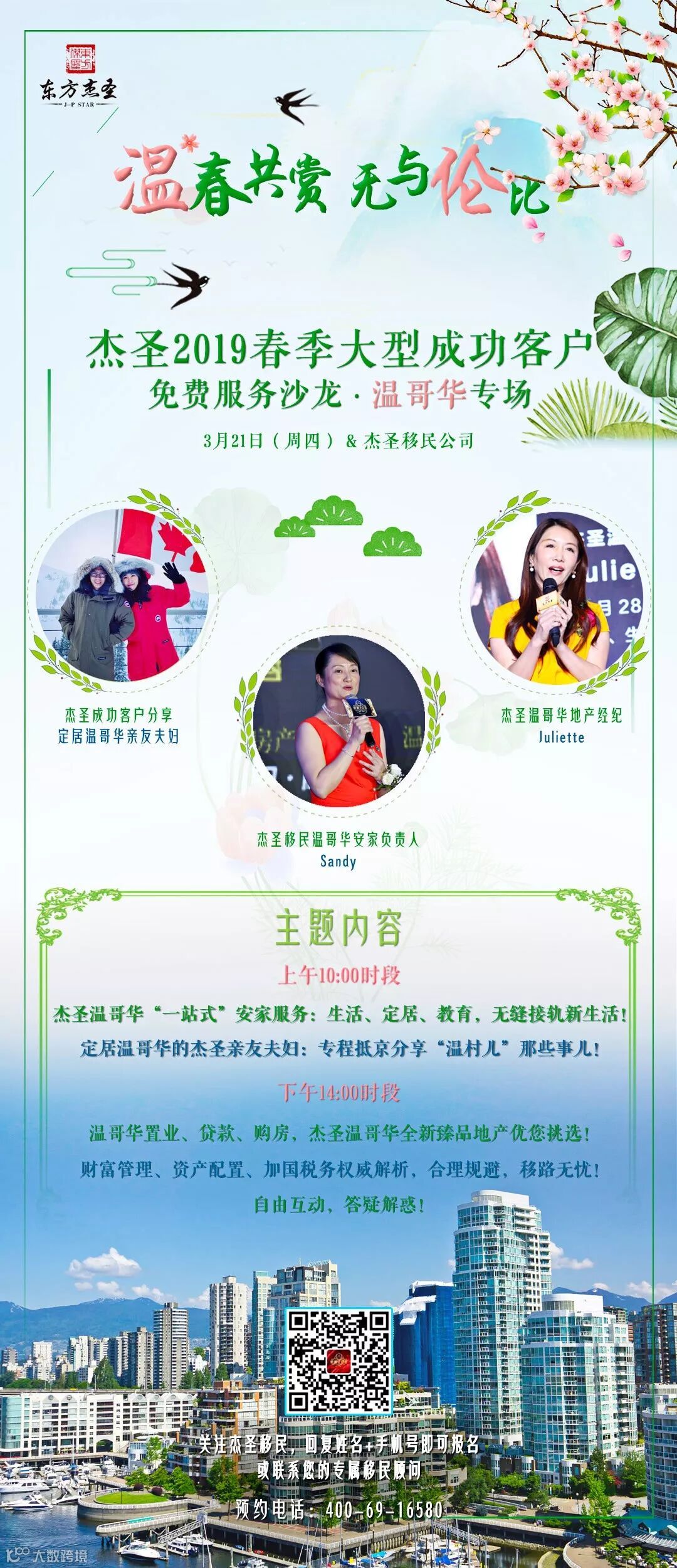 3月21日:杰圣2019春季大型成功客户免费服务沙龙·温哥华专场也在等着您哦!