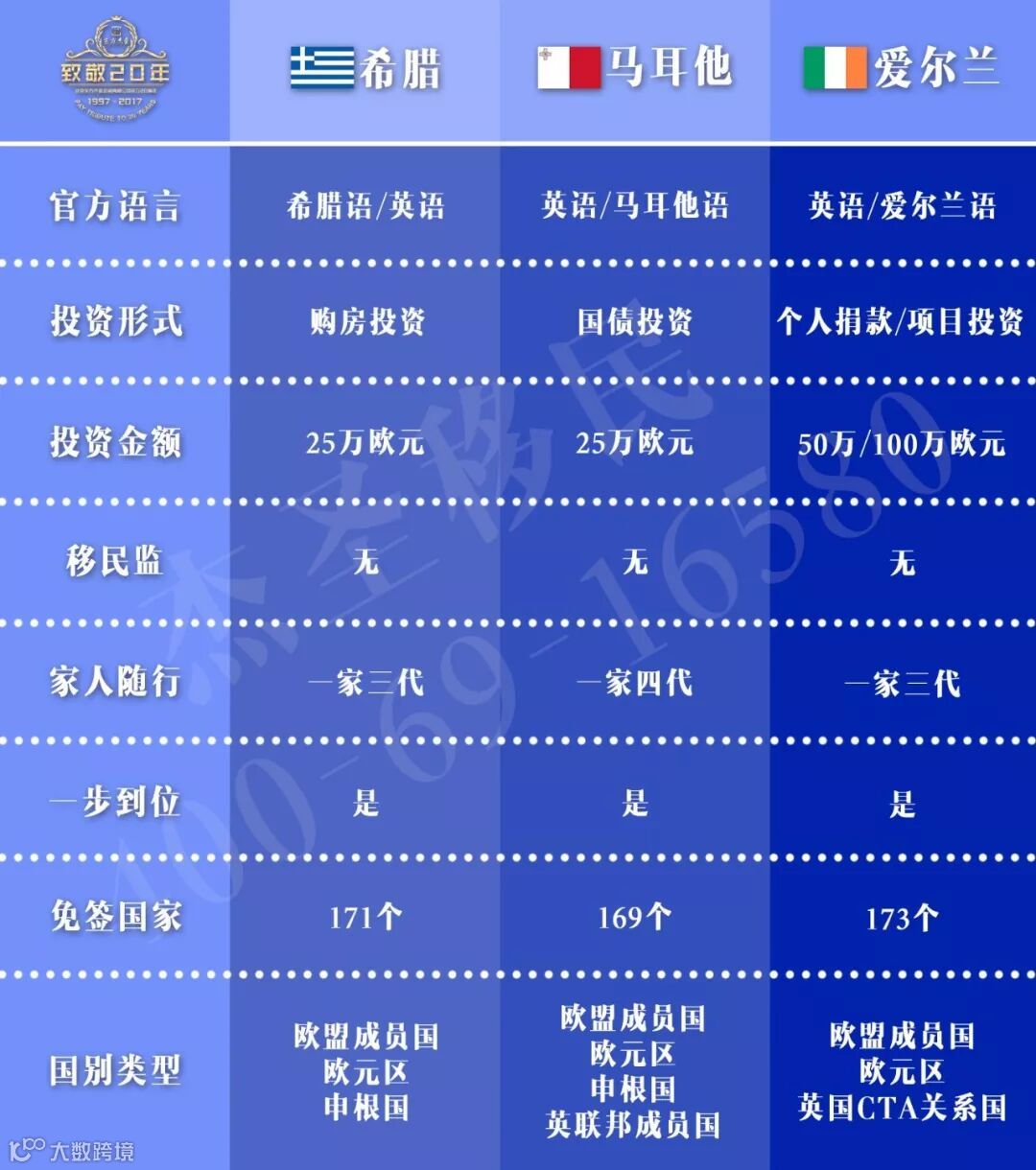 “移民监”就是普遍对居住时间的要求,如果您的事业重心仍在国内,不方便在海外居住,那么希腊购房移民、马耳他国债移民、爱尔兰投资移民都是无居住要求的项目优质。