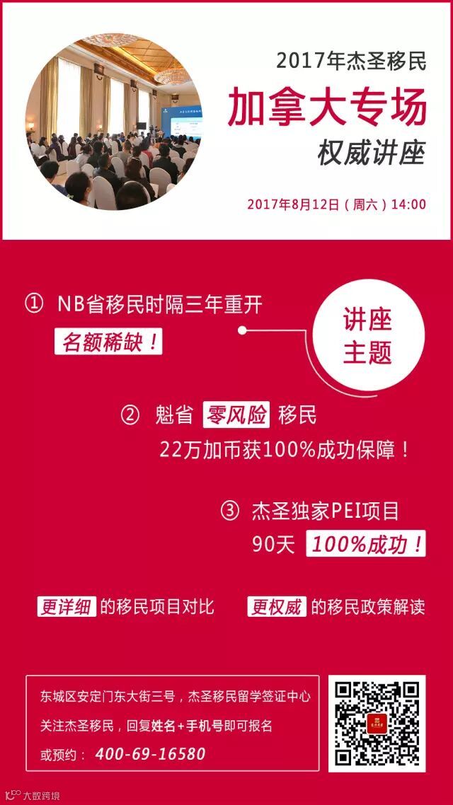 本周六下午,杰圣加拿大投资移民专场讲座,为您提供最权威的加拿大移民主题讲座,所有问题,迎刃而解!