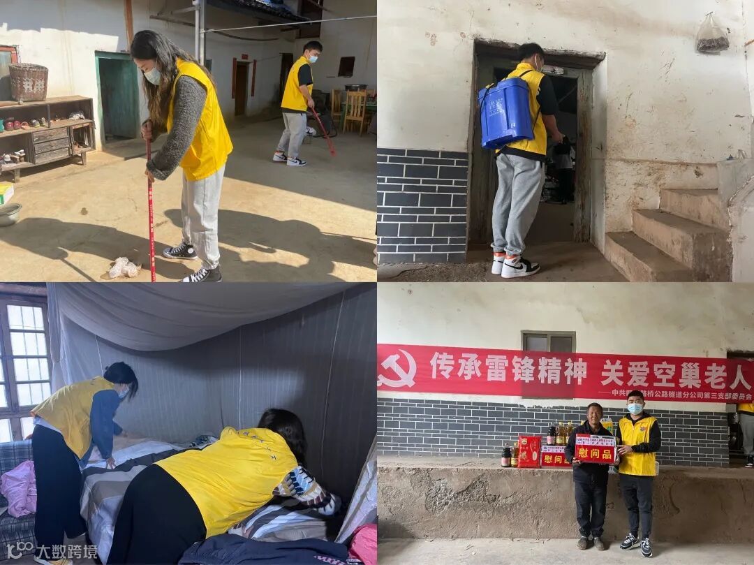 乐西S1-9项目青年志愿服务者关心关爱大谷堆村贫困老党员,送上粮油等生活物资以及防疫物资,并帮助贫困老党员打扫卫生,送上《天路叙事》、《最后一公里》书籍,将党的精神和路桥精神融合升华。