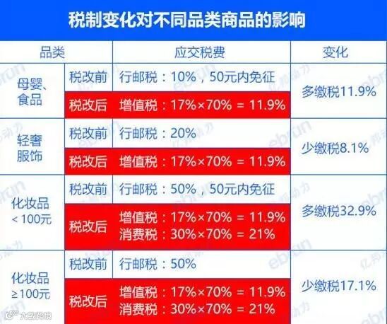 不难想象,母婴、食品类商品的价格可能会因税改而有所提高。而对于服饰和化妆品等不适用50元免税额度的商品,税改后需缴纳的进口税均有不同程度的降低,对此类商品来说是个好消息。