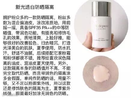 这款妆前隔离有黑长管的妆前隔离乳和黑短管的妆前隔离霜,跟苏菲娜的隔离很像前者是滋润型,干皮的妹子可以看过来,很好推开上色自然、后者是清爽控油的,油皮妹子的福音~but这两者质地都hin像乳液,很薄很清透。