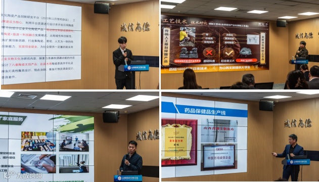 当天下午,在山西股权路演中心举办了“创青春”大赛项目路演暨成果转化对接会,10个优秀项目负责人登台路演,专家评委从技术创新、商业模式、投融资价值等方面进行点评和辅导,探索建立大赛优秀项目转化落地的长效机制,助力他们从“赛场”走向“市场”。