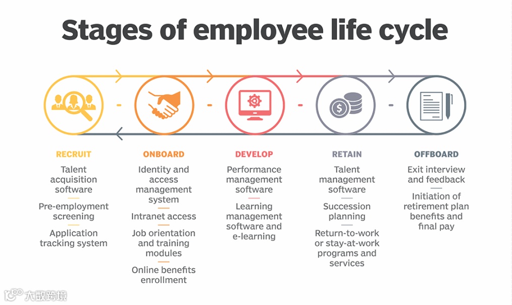 专业的人力资源软件存在于员工生命周期的每个主要阶段,从招聘和入职开始,到离职,再到招聘。