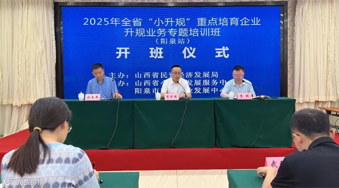 2025年8月21日,山西股权受邀参加2025年全省“小升规”重点培育企业升规业务专题培训班(阳泉站)。本次活动由山西省民营经济发展局主办,山西省小企业发展服务中心、阳泉市民营企业发展中心承办。此次活动旨在进一步推动全省中小微工业企业上规升级,促进我省民营经济发展壮大。山西省民营经济发展局统计监测处处长李经纬、阳泉市民营企业发展中心主任李明、阳泉市民营企业发展中心副主任刘玉寿出席开班仪式。阳泉民营经济部门相关业务人员以及2025年升规入统重点培育企业负责人共计60余人参会。